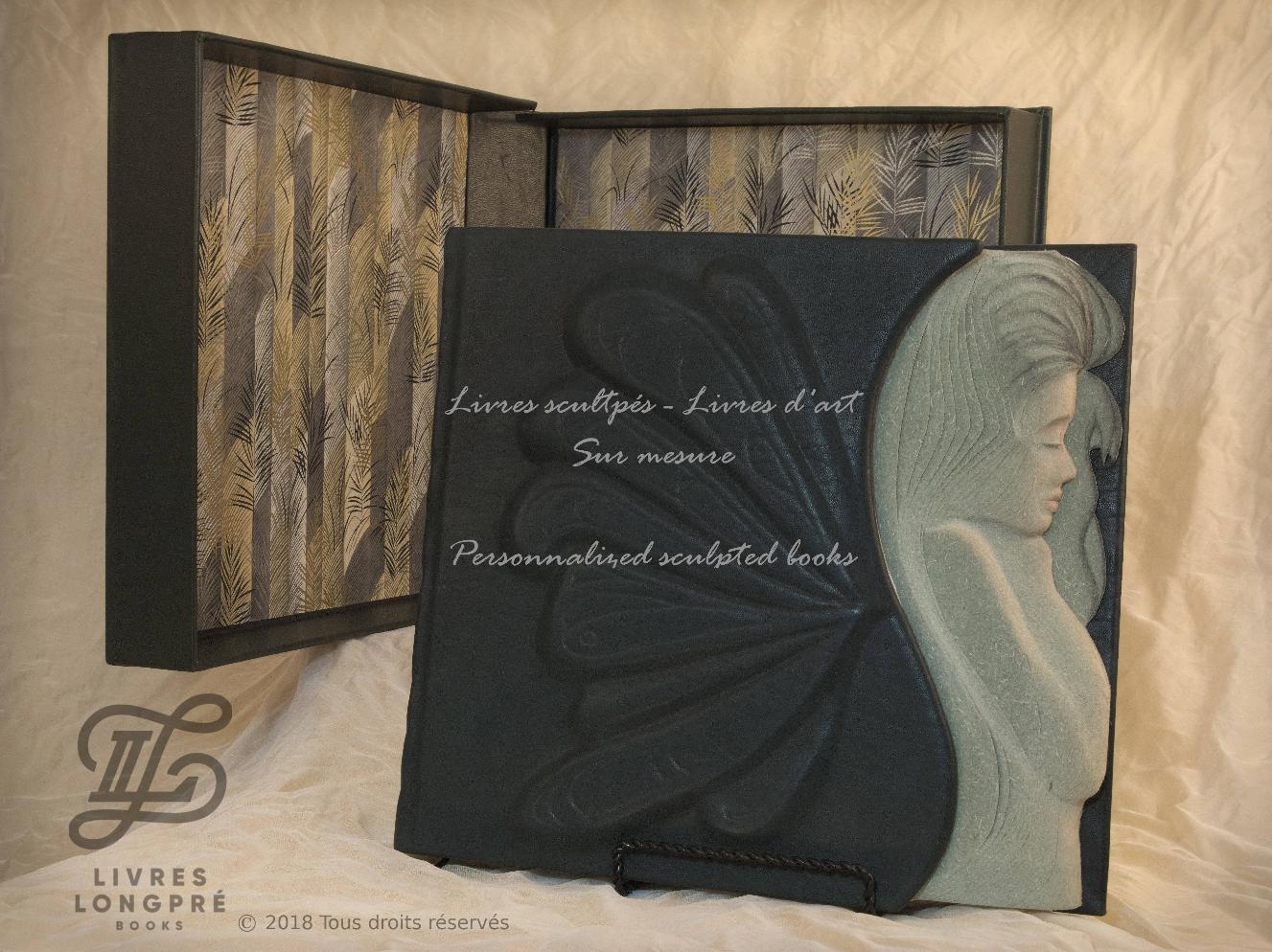 Nous créons et fabriquons tout type de livres sur mesure. Notre spécialité est la sculpture de livres fonctionnels, c'est à dire des livres dont les pages et/ou la couverture sont sculptées à la main(parfois aussi dessinées). Le résultat est un livre qui, tout en étant pleinement utilisable, constitue une oeuvre d'art unique.